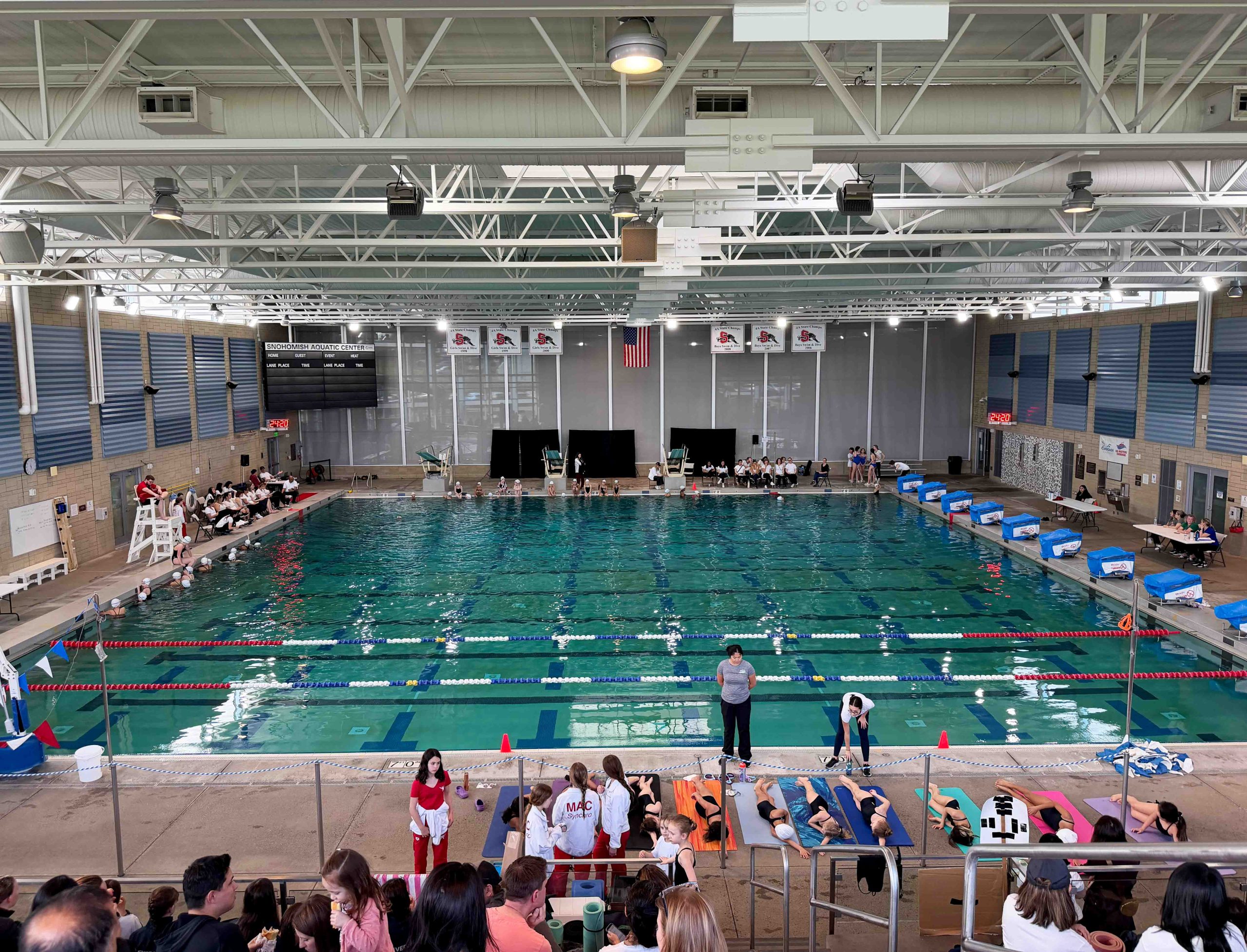 The Snohomish Aquatic Center, a 52,000-square-foot facility, provides a 25-yard-by-25-meter competition pool with 10 six-inch lanes and two 1-meter diving boards, and it’s also been the site for high school swim and dive meets, U.S. Masters Swimming events and the 2018 FlowRider FLOW Tour.